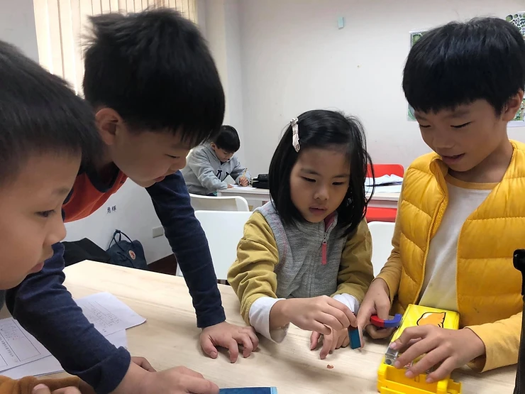 上學期一二三年級的主題課學了「聲音」,再做出獨特的聲音玩具,這學期我們延續玩具的主題,要帶孩子們認識磁力、磁場以及磁化金屬等等,我們將孩子們分成三組,每一組學的磁概念都不同,孩子們在當中體驗、實驗、學習後,要成為小老師,將所學的概念教給另外兩組的同學,最終每個人都能創作出屬於自己的磁力玩具。
